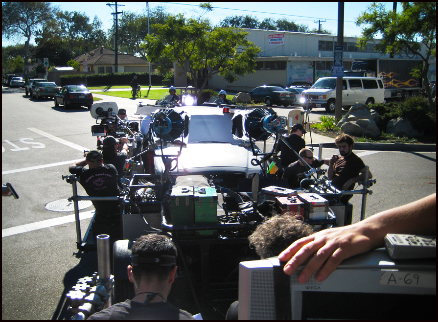 Franco Giacomo-Carbone (Production Designer) discusses the film’s noir tone and how Hollywood is an important setting in the story. The crimes scenes in particular communicate a dichotomy between the appealing glow and neon of Sunset Boulevard and the dark ugly reality of its seedy back alleys (from behind the scenes DVD).