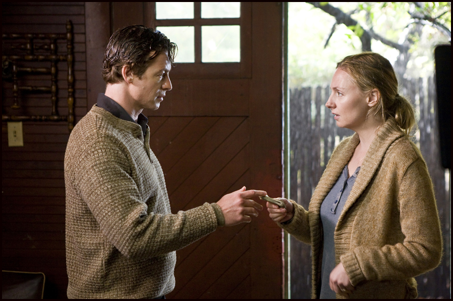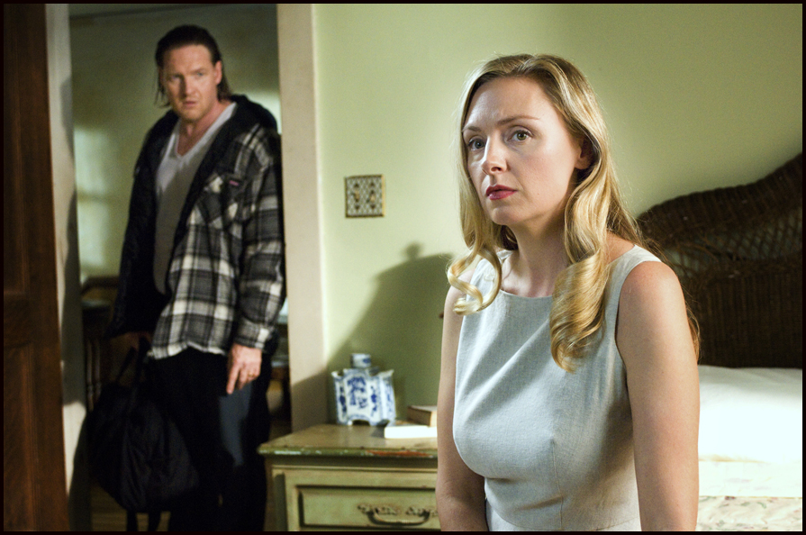 Ellen (Hope Davis) and Malcolm (Simon Baker) are lost in a romantic and forbidden embrace as Ellen’s husband, Bunting (Donal Logue), draws dangerously closer.
